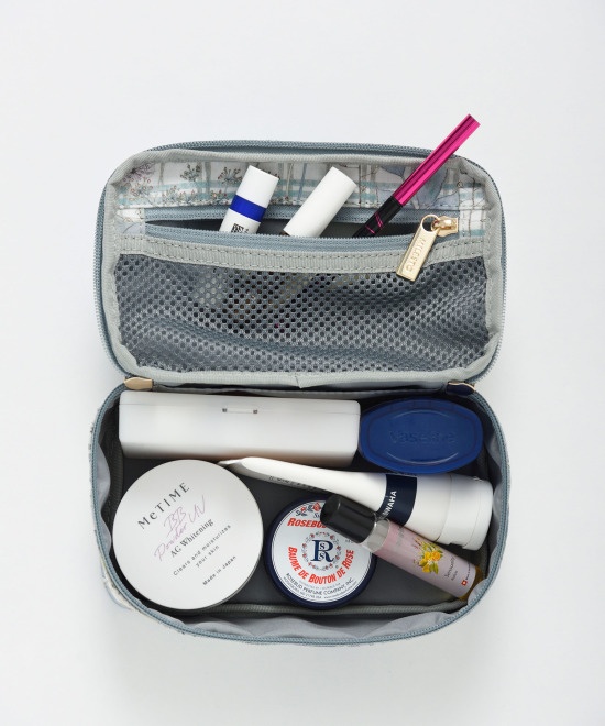 ハンドル付きで持ち運びもスマート、メイク道具や小物をきれいに整理できます。見るたびに気分が華やぐデザインで、毎日の外出がちょっと特別に。
